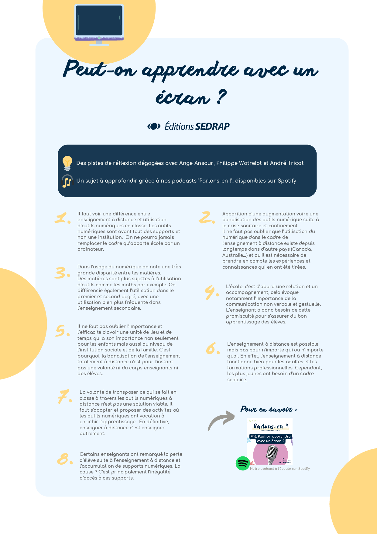 Depuis le mois d’avril 2020, la SEDRAP, éditeur scolaire pour la maternelle et le primaire depuis 35 ans, réunit les acteurs de la pédagogie – enseignants, chercheurs et professionnels médico-sociaux – lors d’une émission, afin d’échanger autour de grands thèmes de l’enseignement en lien avec l’actualité.