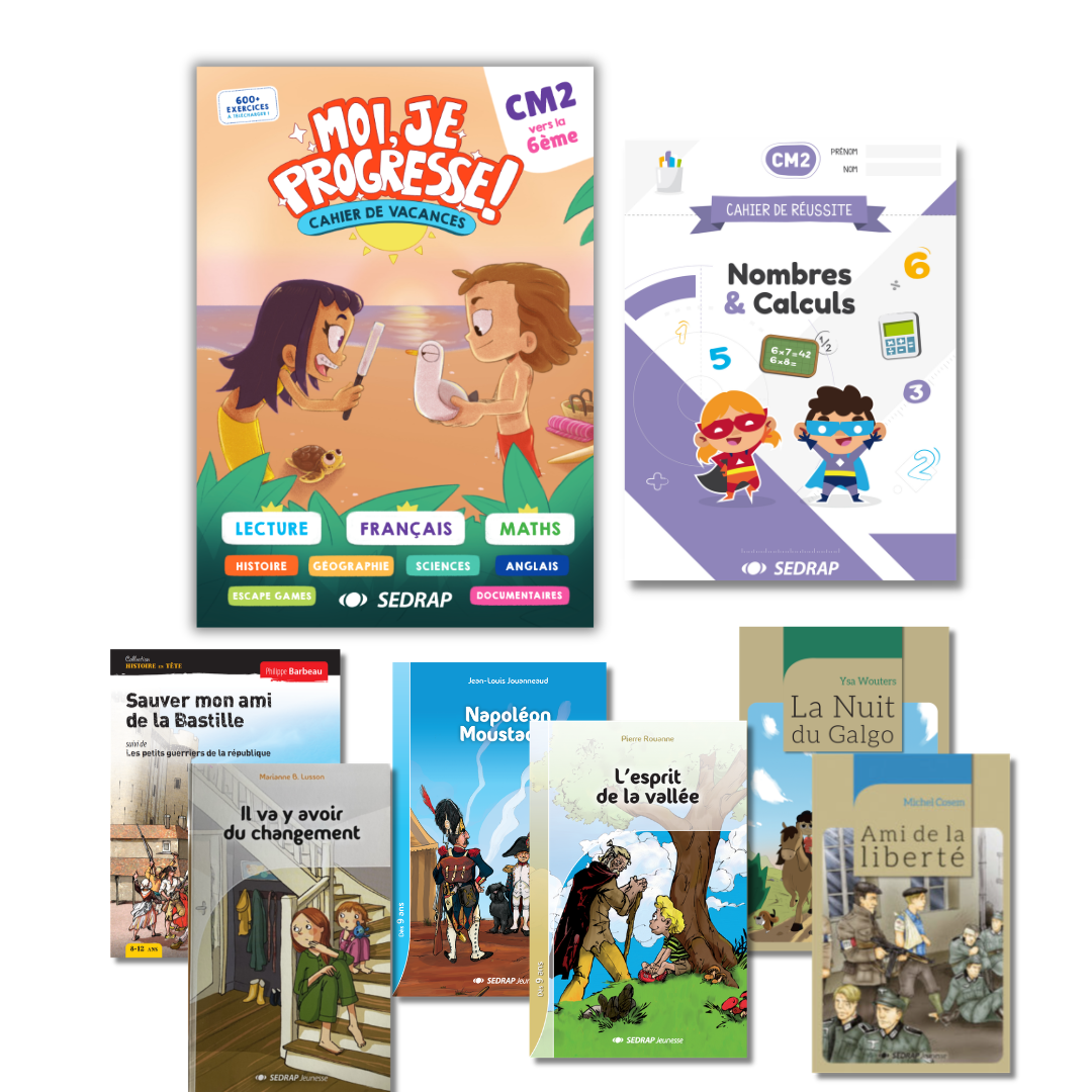 Le pack contient : le cahier Moi, je progresse !, un livre jeunesse et deux compléments pédagogiques pour bien préparer la rentrée.